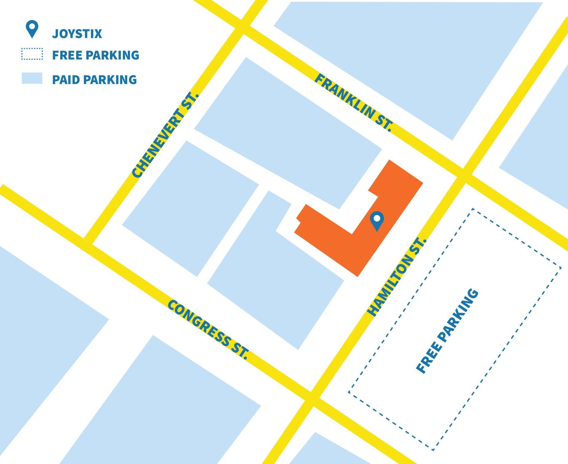 Parking: Complimentary parking for all guests on Hamilton between Congress and Franklin.